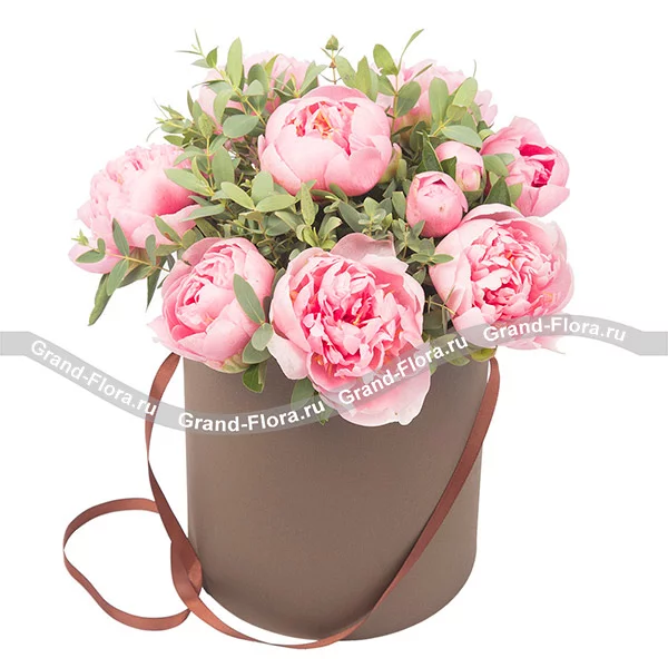 Данный вид товара оформляется за сутки до нужной даты. Цвет пионов и коробки может отличаться от картинки. Просьба уточнять информацию у менеджеров нашей компании.